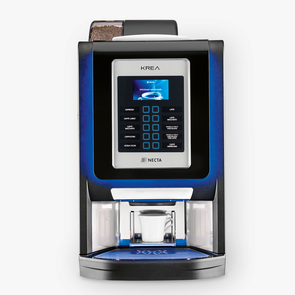 Hagyja magát meghódítani a Krea Prime-val, a Necta Horeca család legújabb elegáns szuperautomata kiegészítőjével. Tetszetős dizájnjával – dekoratív világítással, krómozott keretekkel, fényes fekete felületekkel – és páratlan teljesítményével a Krea Prime a legjobb megoldás a kávészünethez. A háttérvilágítású billentyűzet és az elegáns kijelző egyszerűvé és intuitívvá teszi az italválasztás folyamatát, míg az új, legmodernebb elektronika lehetővé teszi a kezelők számára a receptek gyors testreszabását és a gép egyszerű programozását.